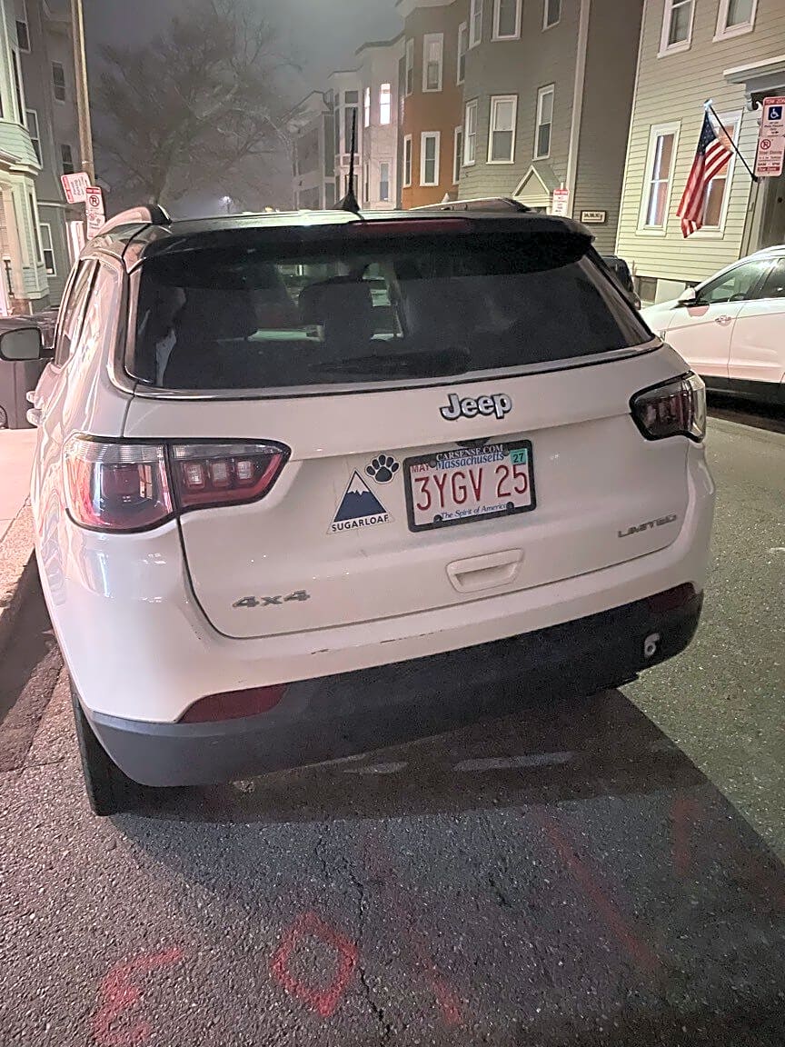 43 G St, South Boston, Ma, 02127Out of state plates in resident parking. This same car is constantly parked in the neighborhood.