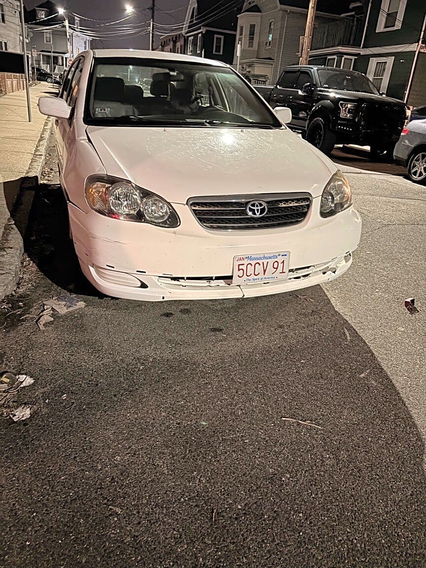 12 Hopkins St, Dorchester, Ma, 02124A car is blocking the driveway and appears to be abandoned, as it has been parked there for two weeks.