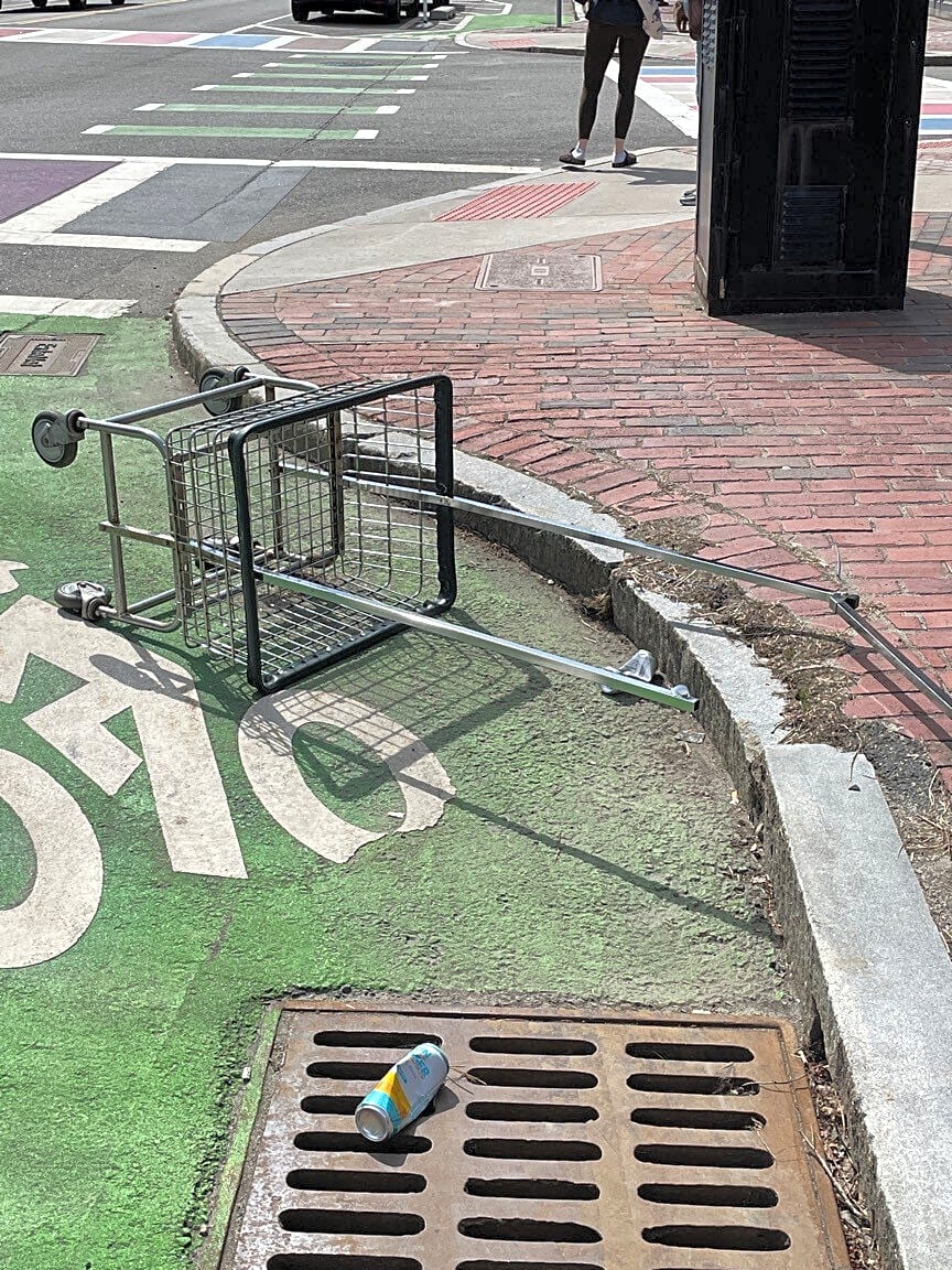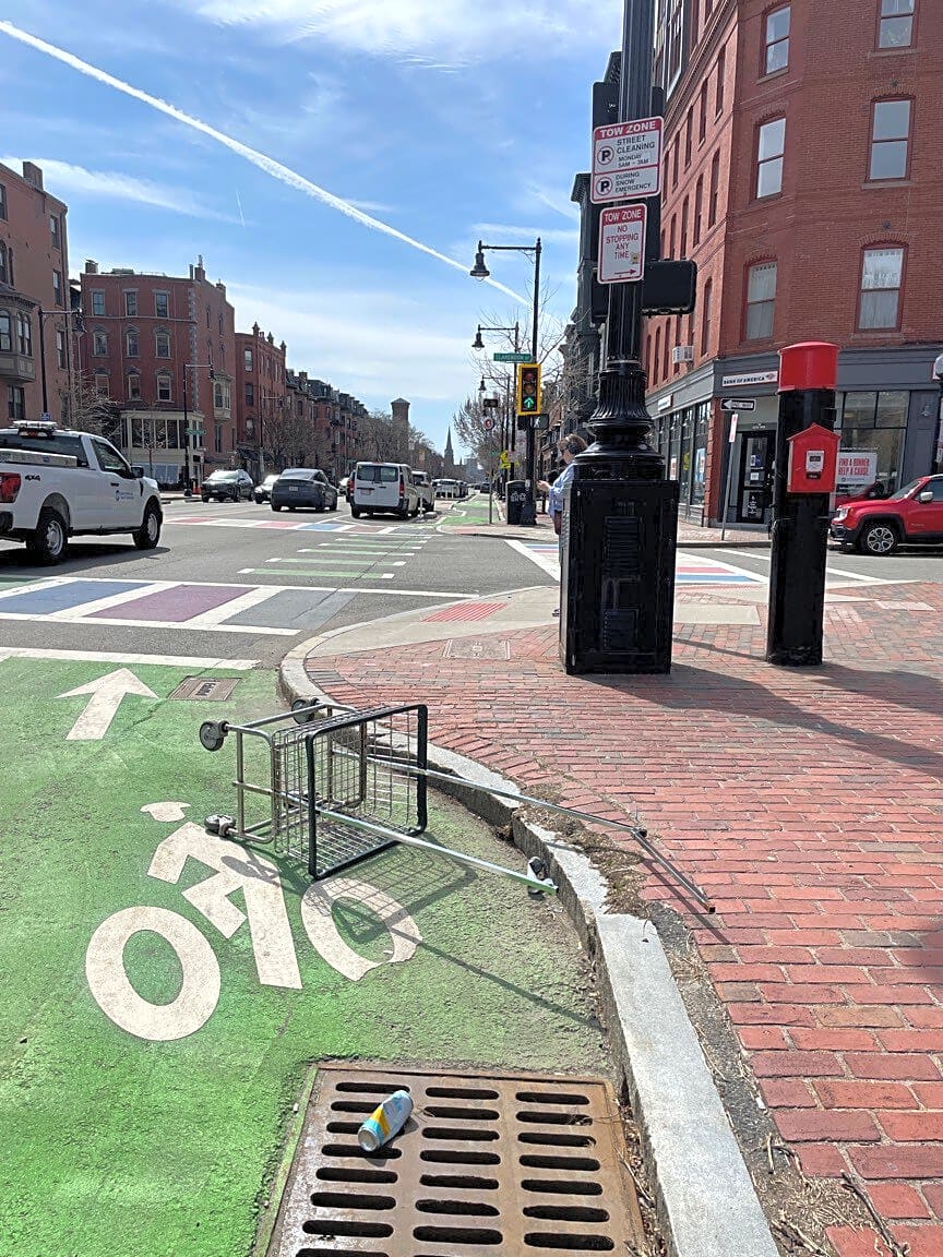 Intersection Of Clarendon St And Tremont St, Boston, MaTrash. Dangerous as I. Ike lane. Please remove. Tremont and Claredon.
