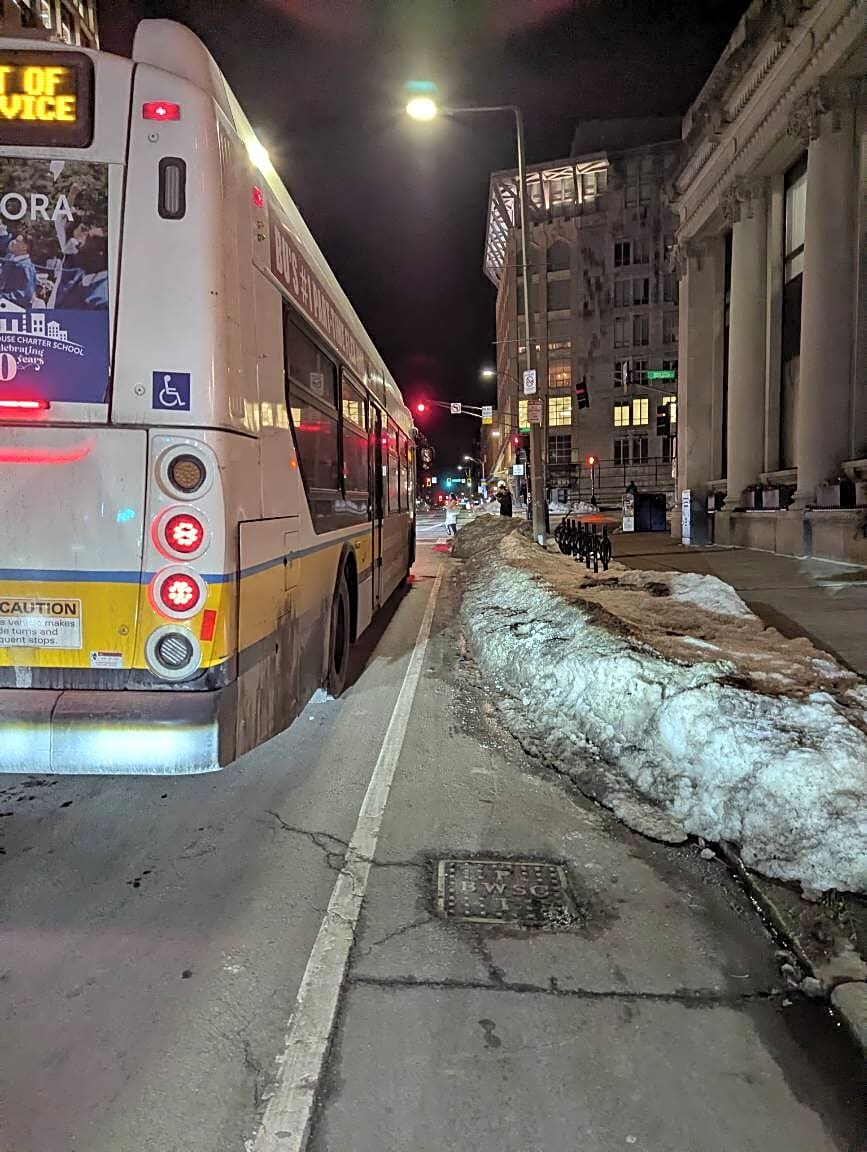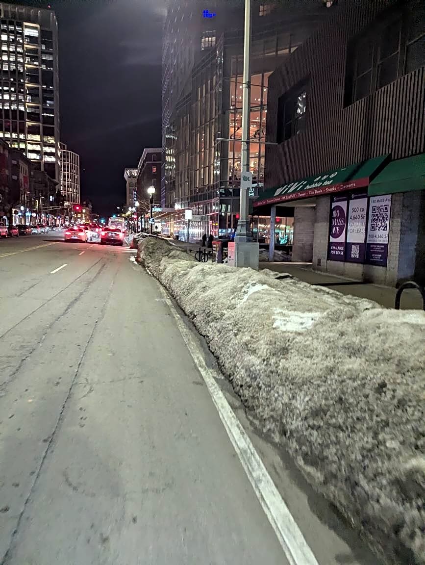 168 174 Massachusetts Ave, Boston, Ma, 02115Bike lane covered in snow