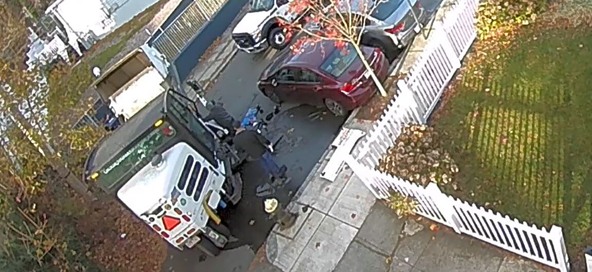 60 62 Lane Park, Brighton, Ma, 02135Trash and recycle barrels left out on sidewalk