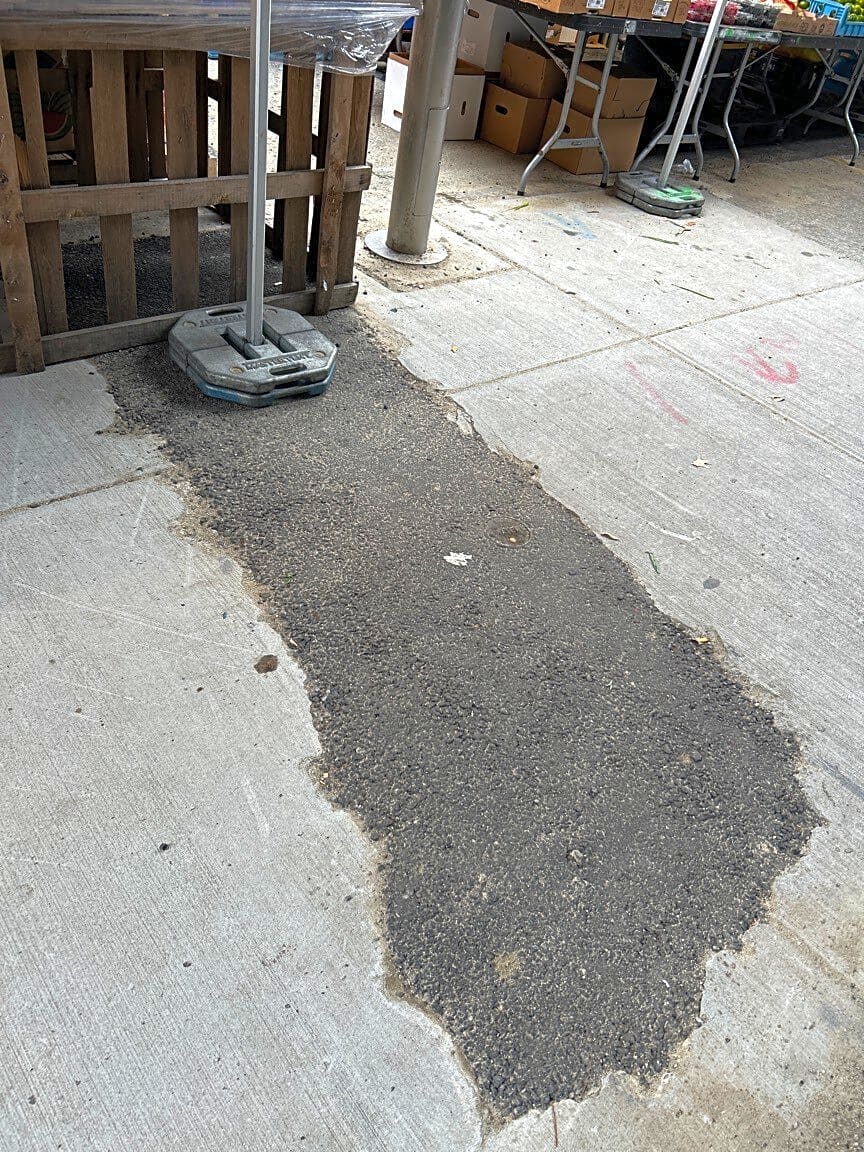 108 Blackstone St, Boston, Ma, 02109Utility company cut into sidewalk at 100 Blackstone Street several weeks ago without leaving medallion identifying themselves but we think it was gas company (Eversource or National Grid?). Please have someone contact them and get date they will fix permanently. Thank you.