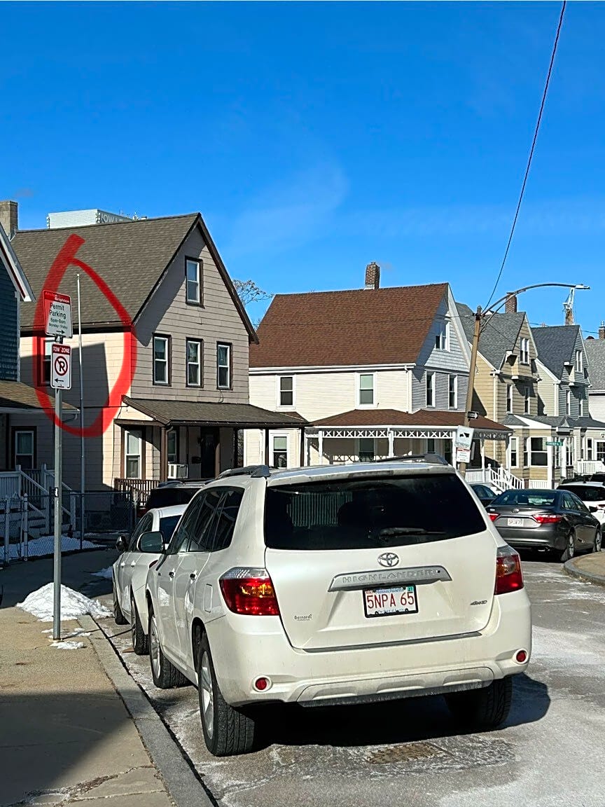24 Lawrence St, Boston, Ma, 02116Car parked in no parking zone on Lawrence by Clarendon. Black BMW license plate 7WG455.