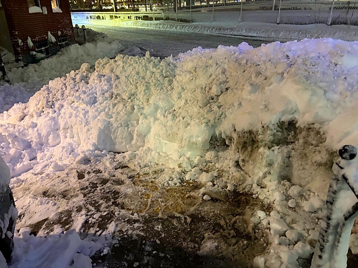4 Stillman Pl, Boston, Ma, 02113Handicap side walk not accessible. Driveway completely blocked in by a bulldozer that dumped all the snow behind my car. This didn’t happen the last snow storm. Now there’s a 4 foot wall blocking the sidewalk/ walkway of a handicapped ramp and I’m not able to take my car out.
