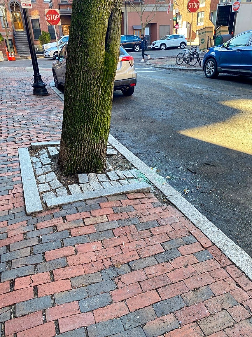 128 Marginal St, East Boston, Ma, 02128Broken glass on sidewalk, street and entrance to parking lot between 126 Marginal Street and Joe Ciampa Garden in East Boston MA 02128