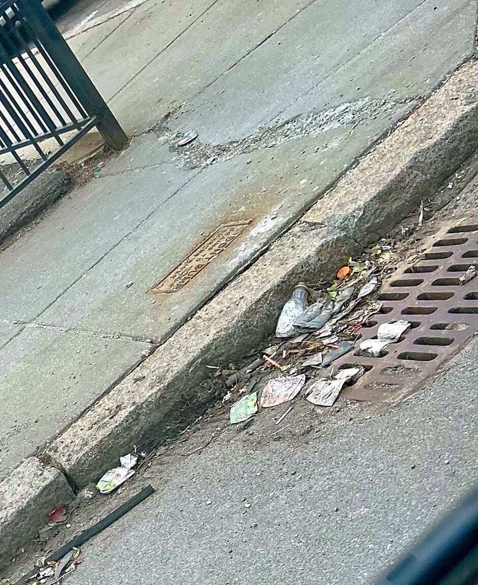 Intersection Of Lorna Rd And Tiverton Rd, Mattapan, MaTon of debris blocking the gutter please sweep and remove.