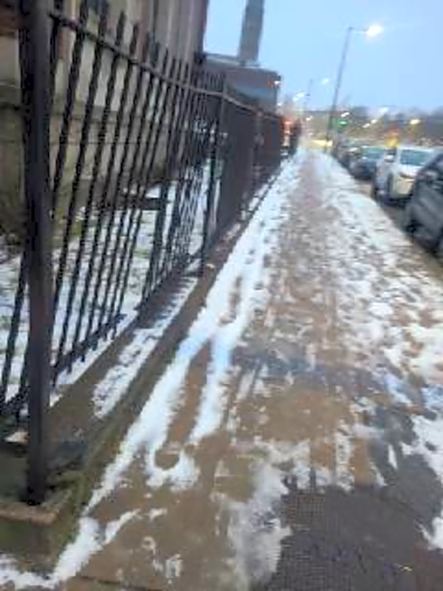 CLOSED #101006431857Noted. Snow,ice and rain is actively falling and a violation can not be issued at this time. Please resubmit your case when the proper amount of time has passed. Thank you.