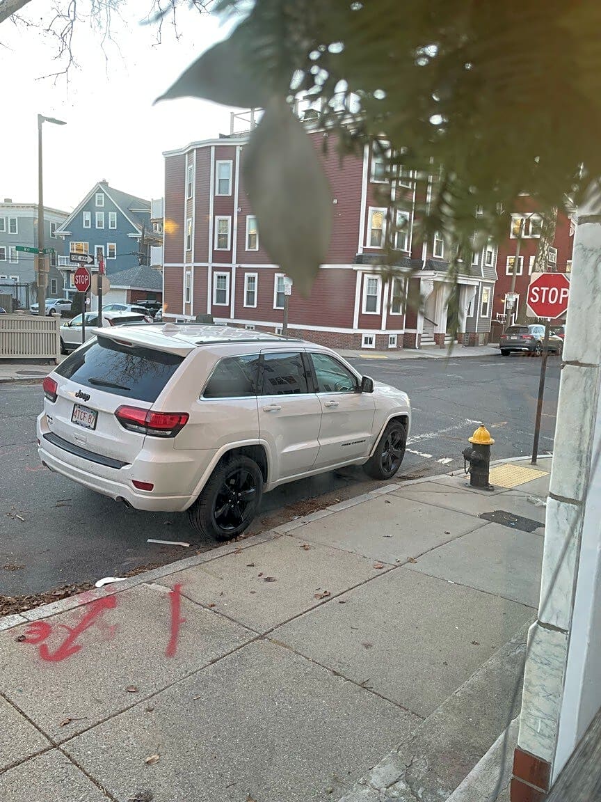6 Brigham St, 2, East Boston, Ma, 02128How is the car parked illegally: [Fire lane] Make: [Honda] Model: [4DR] Color: [GreySilver] Vehicle License Plate Registration: [822R09]