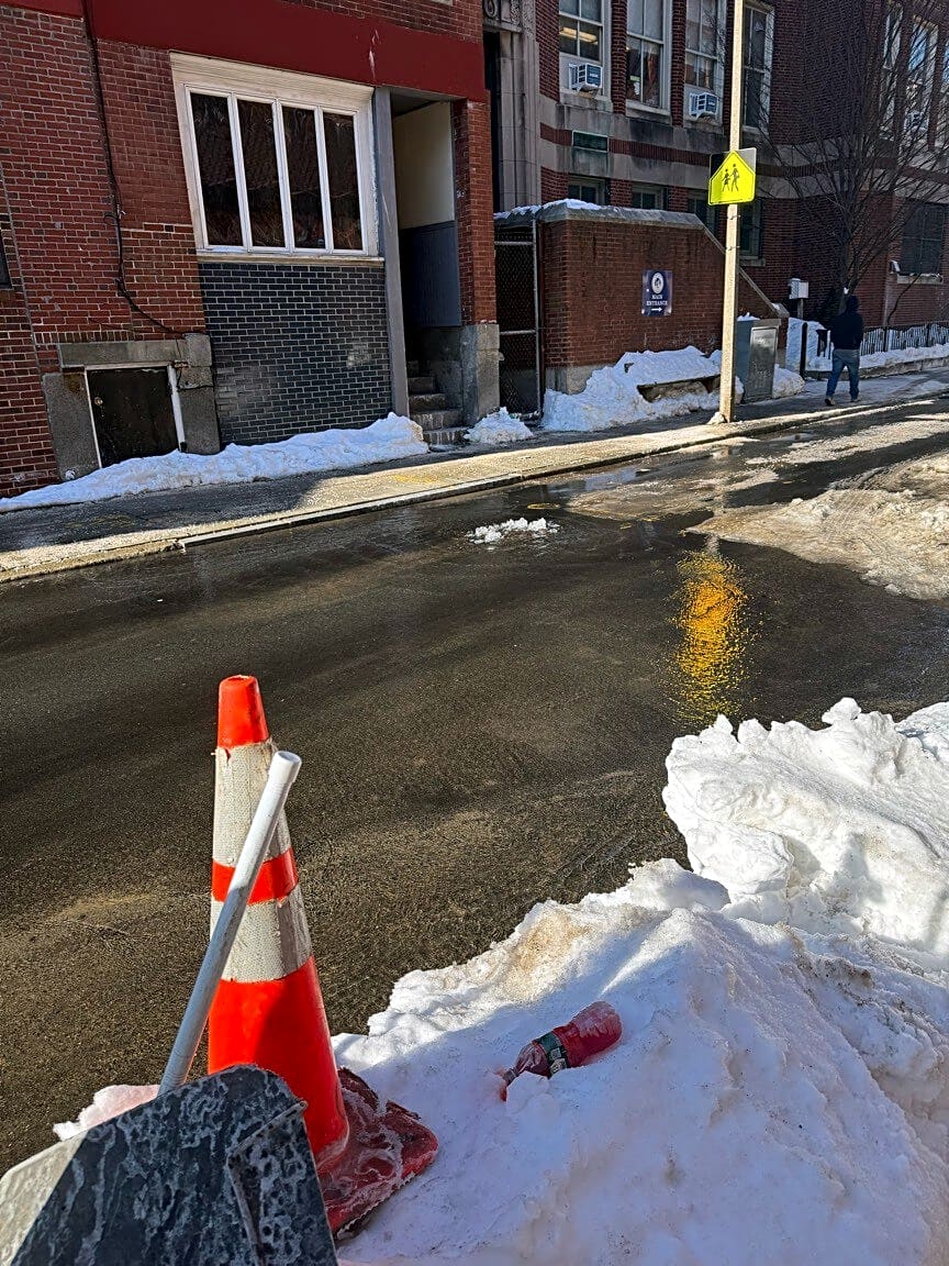 1 7 A Charter St, Boston, Ma, 02113Water actively coming out of cover on Charter. Right at the entrance from Hanover Street. In front of the fire dept parking lot. 311 Notified BWSC about water leak at intersection of Hanover Street and Charter St spoke to Joe at 1:32am- 2/4/26. | Case (SR) Type: [Miscellaneous] Referred To: [BWSC (All Cases)]