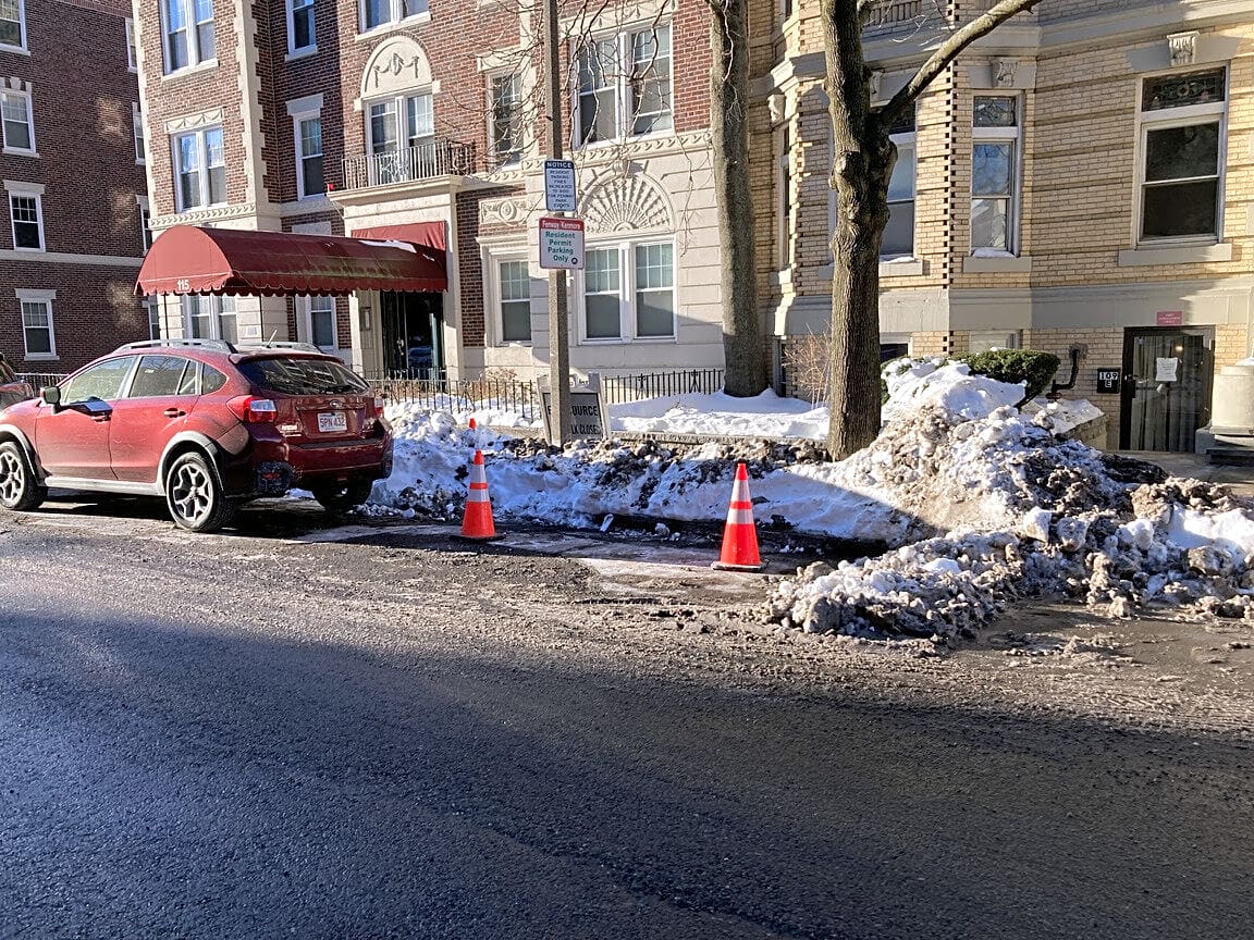 109 Peterborough St, Boston, Ma, 02215Space Saver Issue. Fenway resident continues to use orange cones (left behind by D’Allessandro Corp. following roadwork done on Peterborough Street) as space savers following the most resent snowstorm. In front of 109/115 Peterborough St. Plate # 6VSE 38