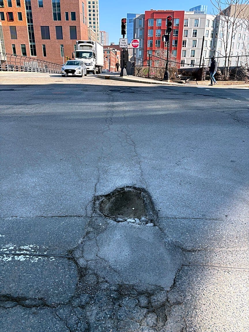 Intersection Of Herald St And Harrison Ave, Boston, MaLarge pot hole at the intersection of Harrison Ave and Herald Street!