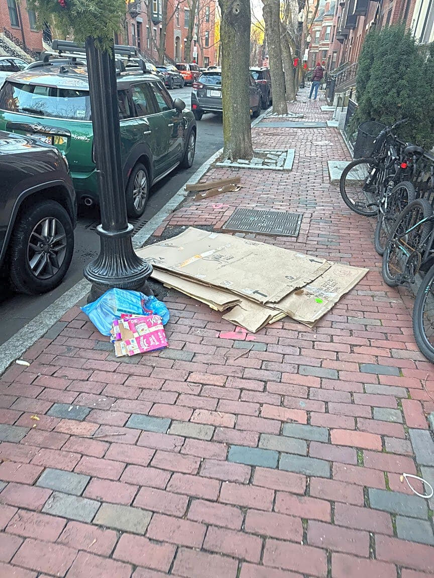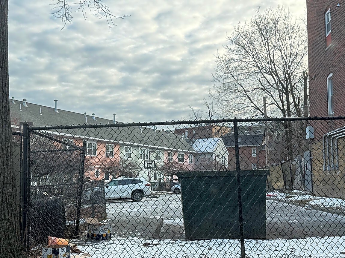 Loose trash and debris in backyard and along back fence. There are red plastics cups , empty beer cans and old cardboard debris around. Most of the litter is along fencing