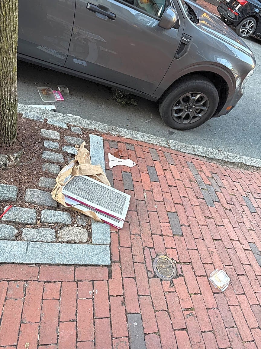 40 Evergreen St, 1, Jamaica Plain, Ma, 02130empty barrels blocking sidewalk, were blown over in wind and never picked up. | Exact location: [front]