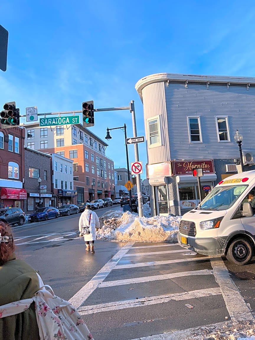 Intersection Of Clare Ave And American Legion Hwy, Hyde Park, MaSidewalk not shoveled