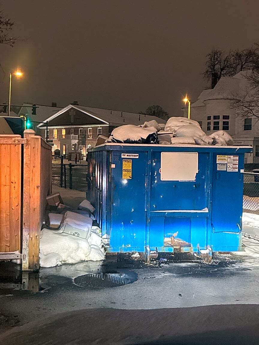 65 Sullivan St, Charlestown, Ma, 02129Please provide some guidance here. Does 65 Sullivan Street have a permit for the dumpster AND blocking additional parking? Because there are cones, caution tape and other barriers that are still up and next to the dumpster and those residents have been using them for their own personal parking, even though they have their own parking around the corner. If the permit isn’t for blocking parking spaces in addition to the dumpster, please have them remove the obstructions.