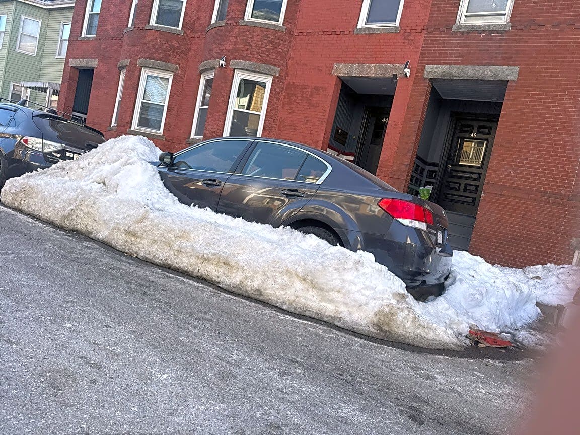 46 Saxton St, Dorchester, Ma, 02125This vehicle has been abandoned here for a month, it was covered in snow and they haven't moved it. It's taking up space in the residential area and the permit it has is for a different license plate, I think that's illegal. It has received many fines.