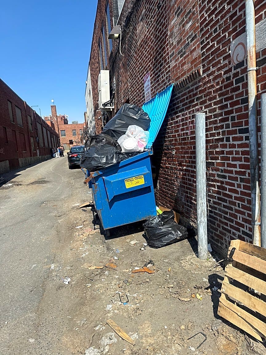 1667 1671 Blue Hill Ave, Mattapan, Ma, 02126Overflowing dumpster behind t mobile