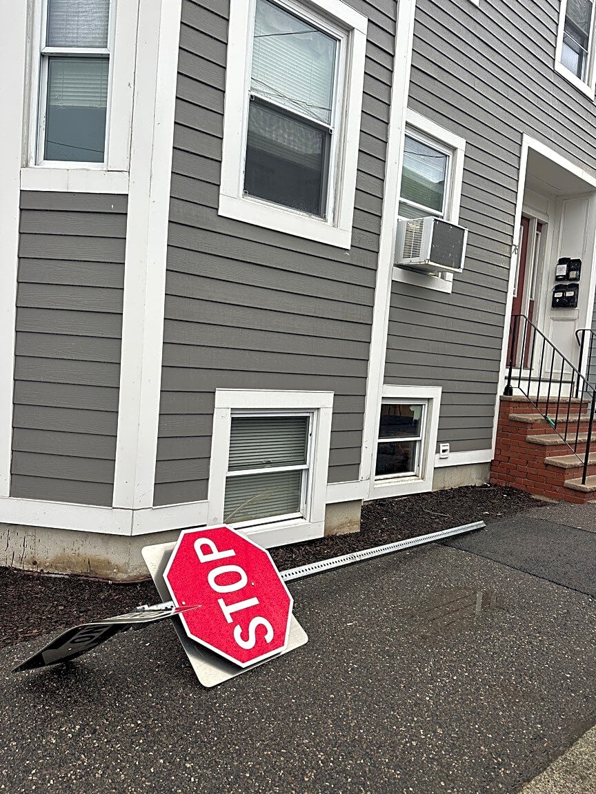 76 Baxter St, South Boston, Ma, 02127There’s a down stop sign from I don’t even know where right in front of my apartment on Baxter St. I wanted to report to make sure wherever it came from gets a new stop sign.