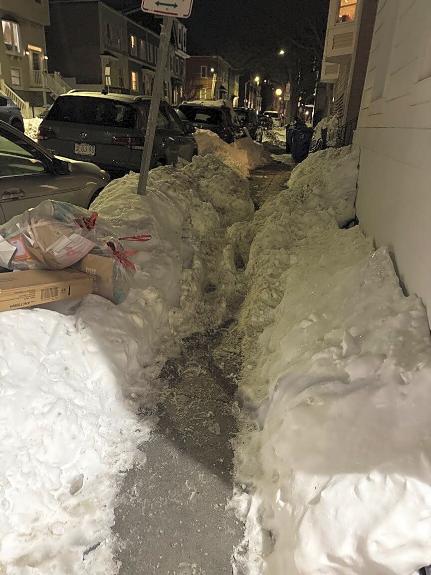 52 Boston St, South Boston, Ma, 02127Sidewalk not shoveled. This is either MBTA or city property. People are walking in the streets to avoid. This is dangerous