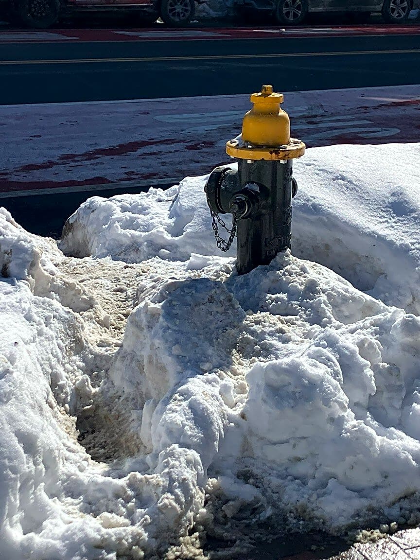 Intersection Of Wilkes Psge And Washington St, Roxbury, MaFire hydrant not cleared of snow. Opposite 1252 Washington Street. Near entrance to dog park at Peters Park South End.