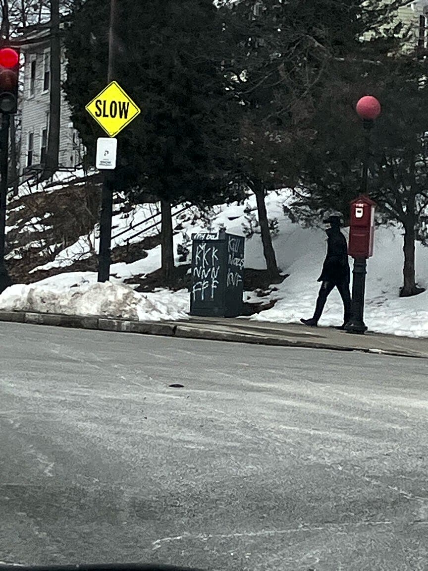 Intersection Of Wallingford Rd And Commonwealth Ave, Brighton, MaOffensive similar graffiti all around Brighton recently