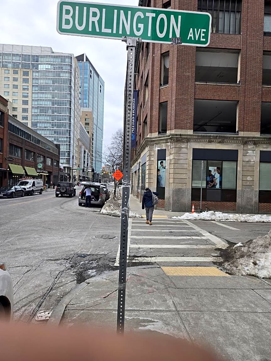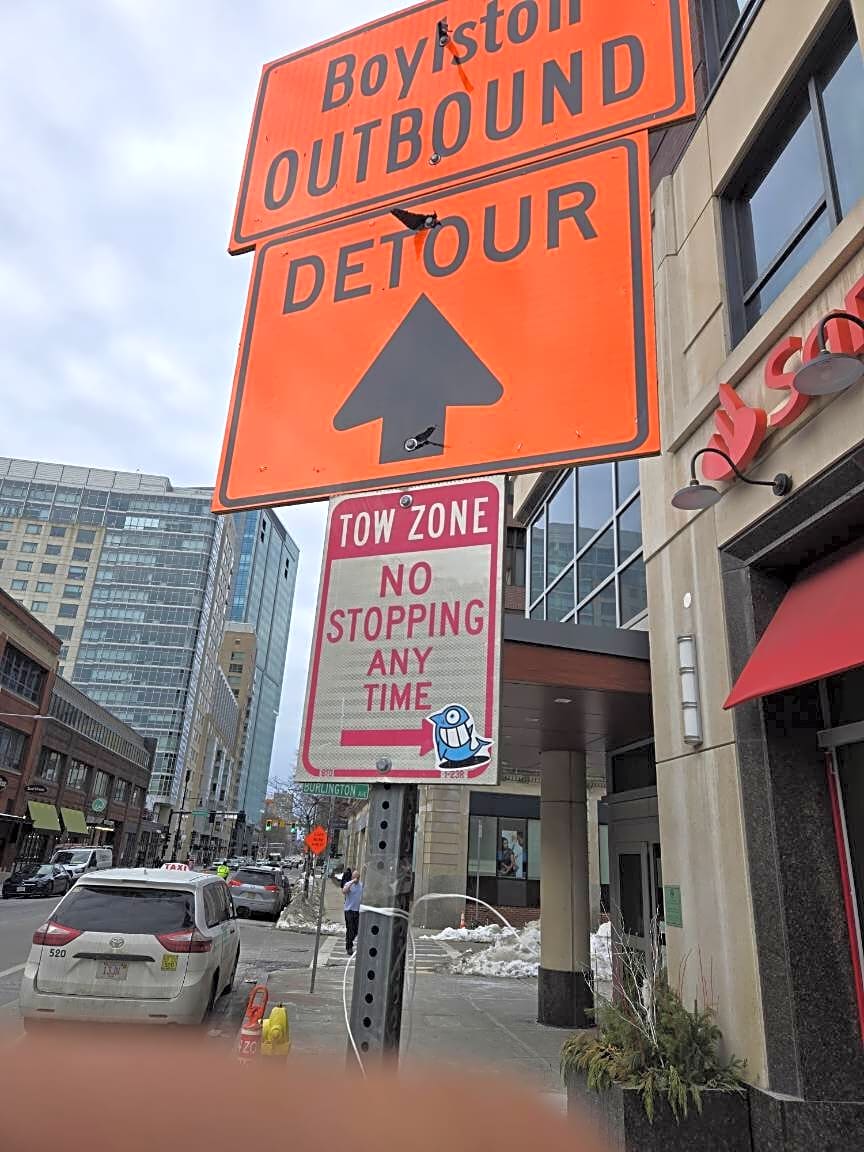 Intersection Of Burlington Ave And Brookline Ave, Boston, MaAnd missing taxi sign