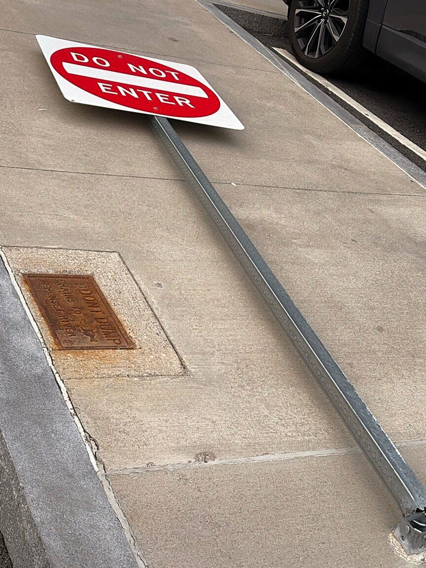 500 510 H River St, Mattapan, Ma, 02126MBTA Signage laying on sidewalk obstructing pedestrians- extremely dangerous