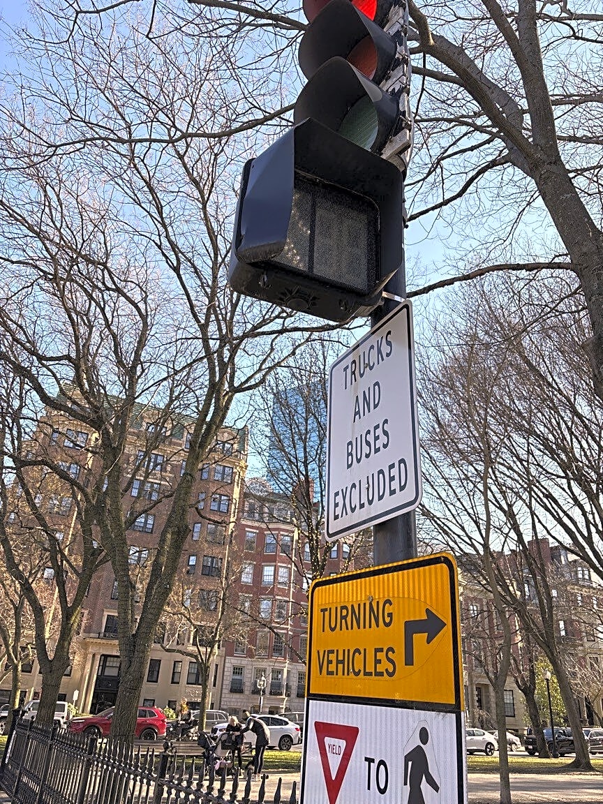 Intersection Of Avery St And Tremont St, Boston, MaBoulder on walk path in commons. Across from amc theatre