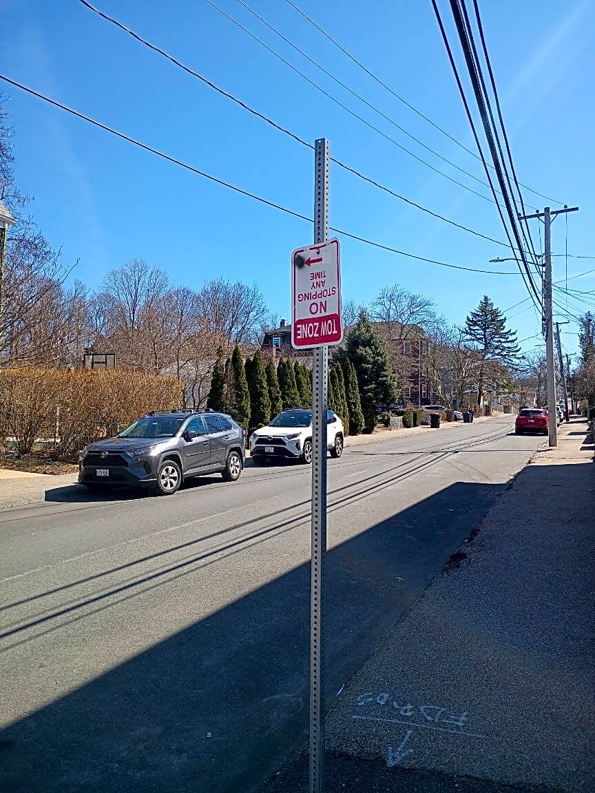 Intersection Of Beacon St And Warren Ave, Hyde Park, MaSign damaged
