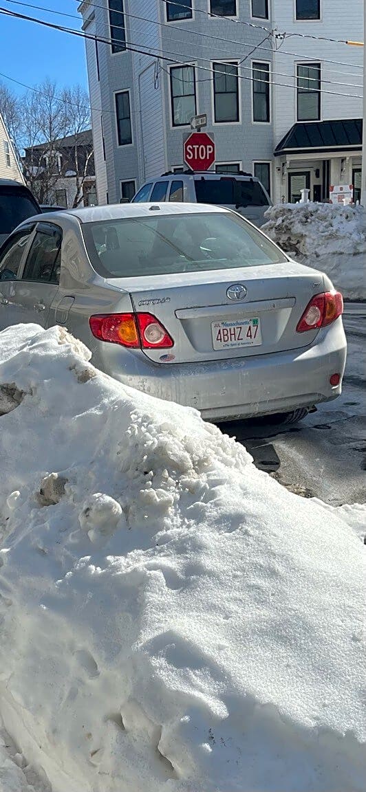 22 Buttonwood St, Dorchester, Ma, 02125Silver Toyota Corolla MA 4BHZ 47 parked illegally