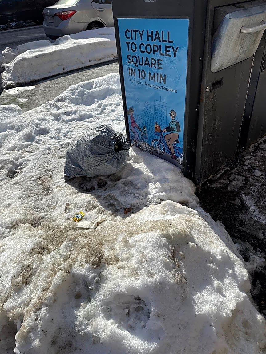 655 Tremont St, Roxbury, Ma, 02118Trash left out repeatedly after pick up. Trash picked up this morning. Bag out after 10AM after Tues AM pick up