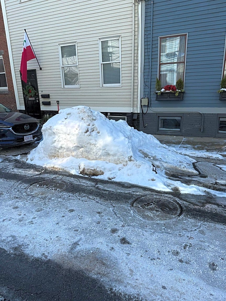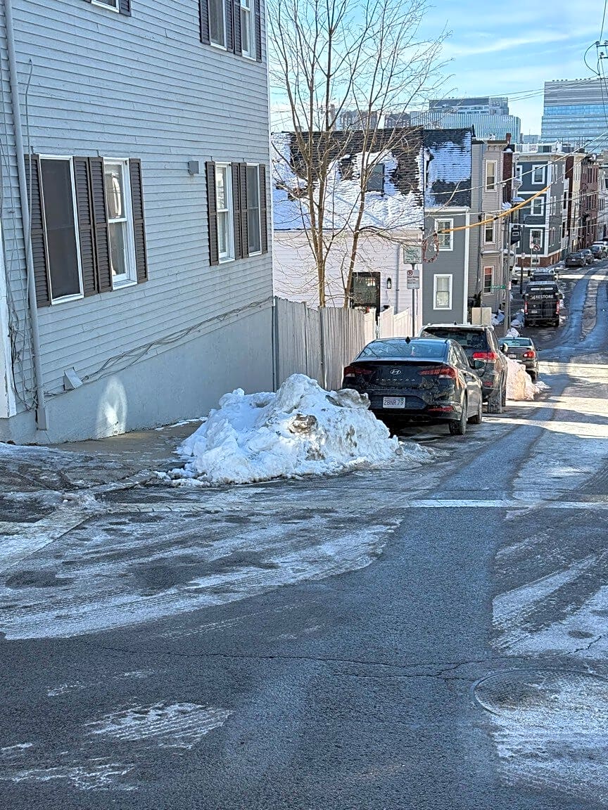 Intersection Of Russell St And Walker St, Charlestown, MaSnow removal needed on Sullivan St and Walker St in Charlestown to open up blocked parking. Also on Wall St and Russel St.