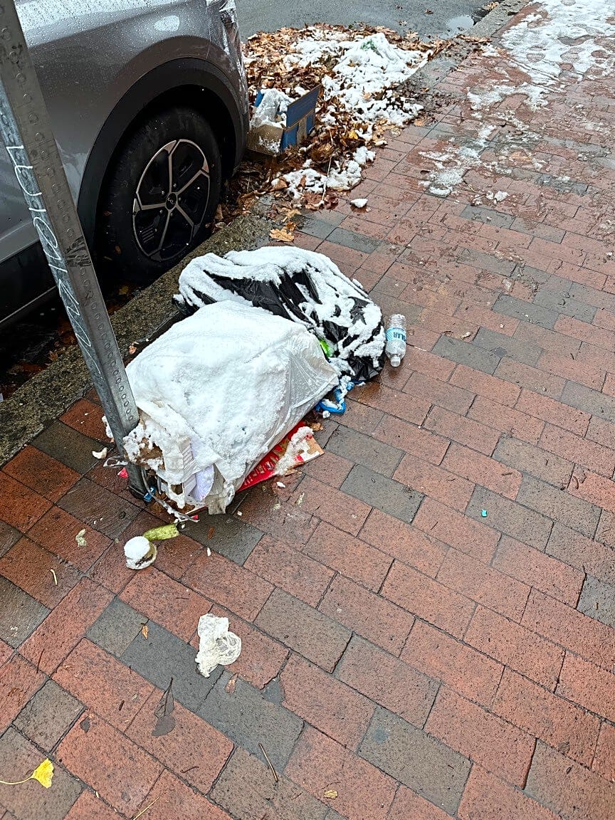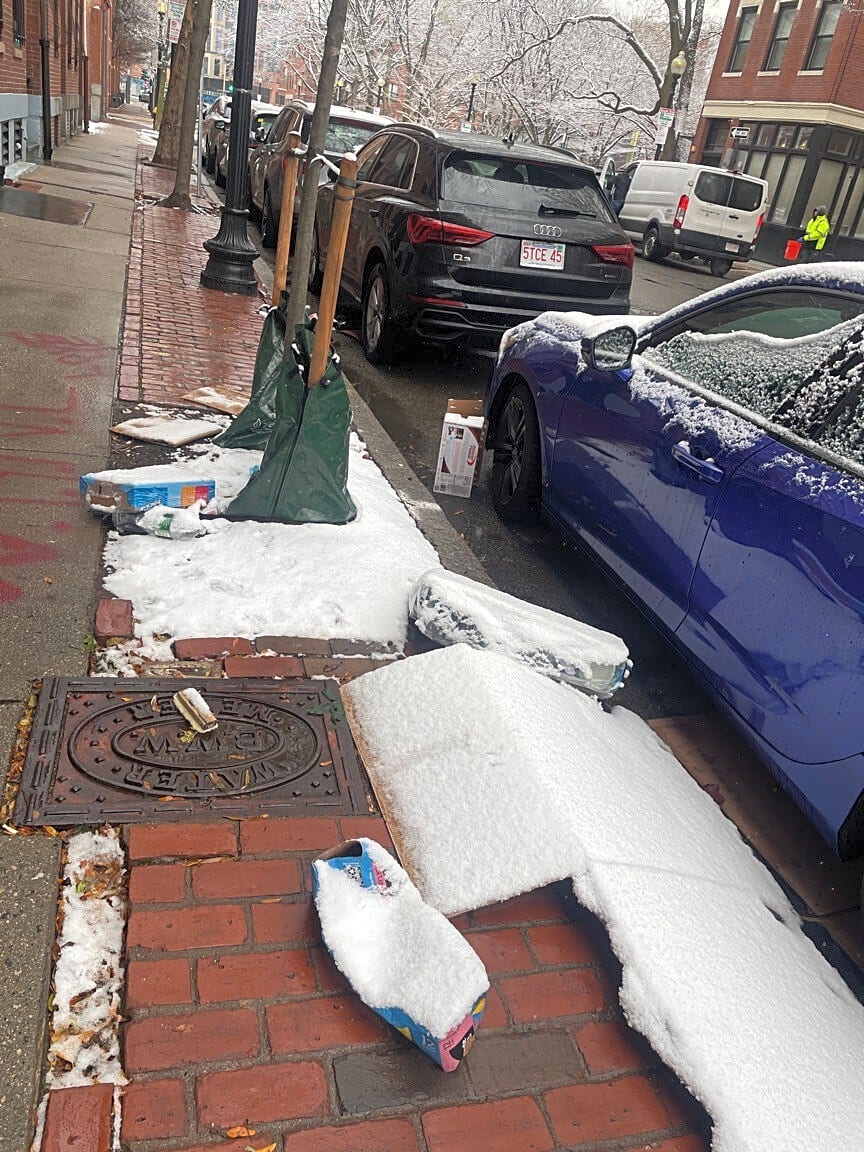 45 Lawrence St, Boston, Ma, 02116Buckets left on sidewalk across from 45 Lawrence st.