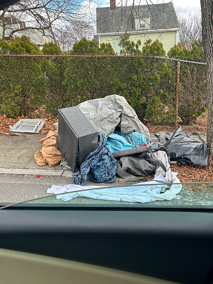 121 Cottage St, East Boston, Ma, 02128Boxes were left behind even though placed outside well in advance of trash/recycling pick-up. Was placed out in the morning before pick-up, do not want to be fined for this since it was put out with adequate time.
