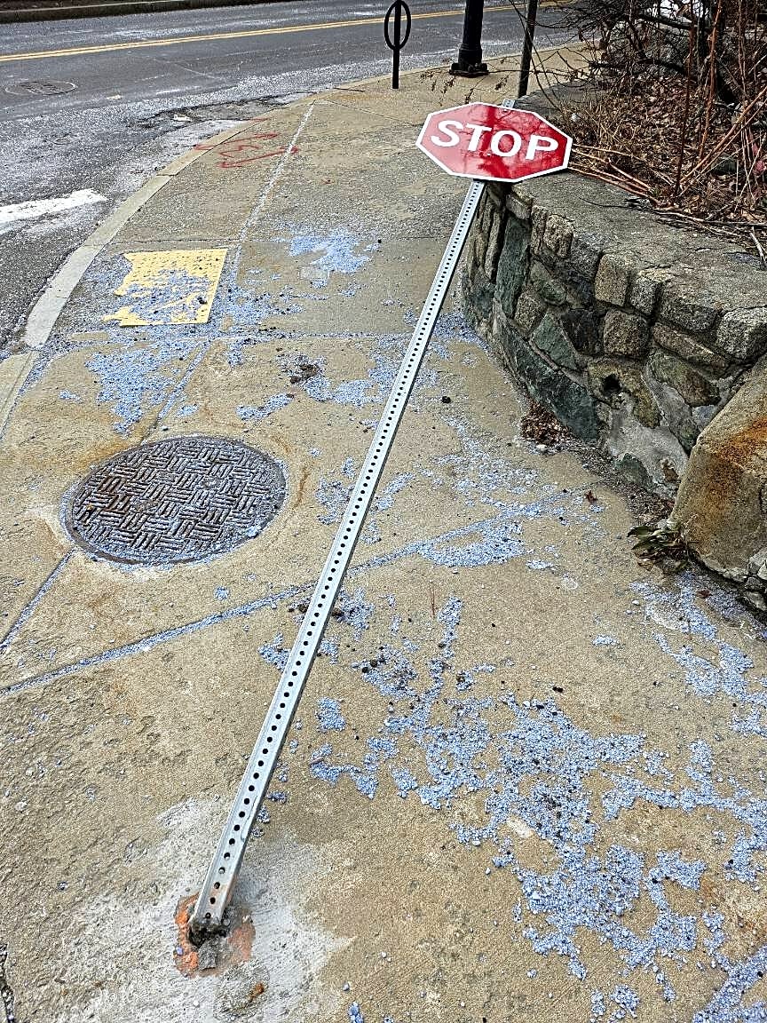 Intersection Of Everett St And Lincoln St, Brighton, MaBroken stop sign