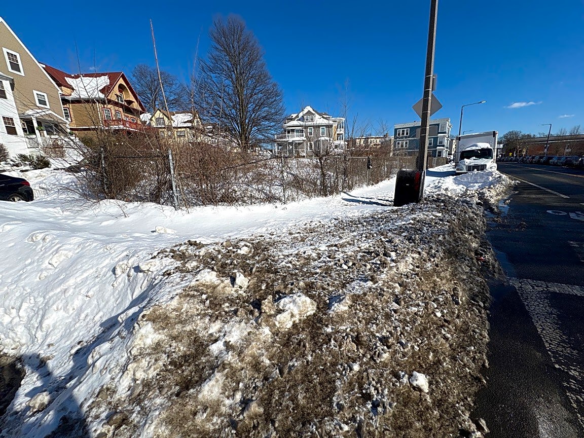 108 Allston St, Allston, Ma, 02134Snowy sidewalk by construction site