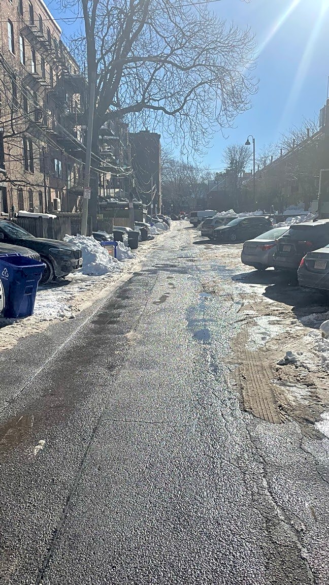 111 Cowing St, West Roxbury, Ma, 02132This is additional photos of the report submitted today since last Wednesday we’ve called for snow removal Case # 6466614 Wednesday case 648131 Thursday. Nor response Friday and the weekend. Snow still there Adding 3 mor angles pictures of the street Thank you for contacting Boston 311. Your service request, opened on 2/3/26 at 10:48 AM, is case number 101006490796.