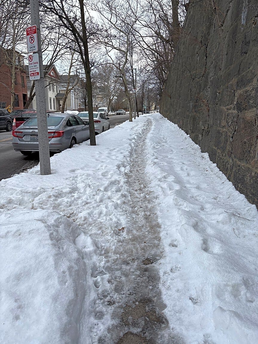 Intersection Of Merton Pl And Centre St, Roxbury, MaCity sidewalk still not shoveled