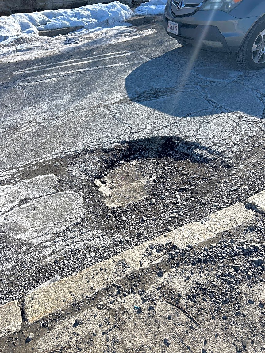 Intersection Of Saratoga St And Bennington St, East Boston, MaGiant crater in the intersection that you can’t avoid