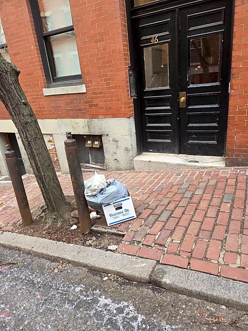 38 Garden St, Boston, Ma, 02114Trash out day early.
