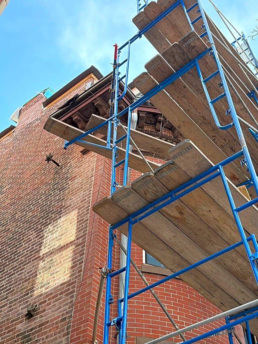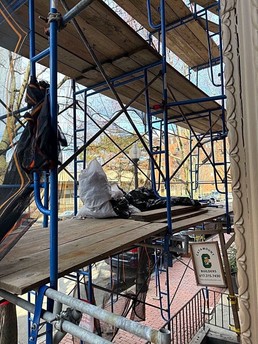 44 Montgomery St, Roxbury, Ma, 02118Scaffolding in poor condition. Covered in trash. It has been up for 2 years and there has been no work done in months. I do not see proper permits. Please please can this be taken down if they are not using it?