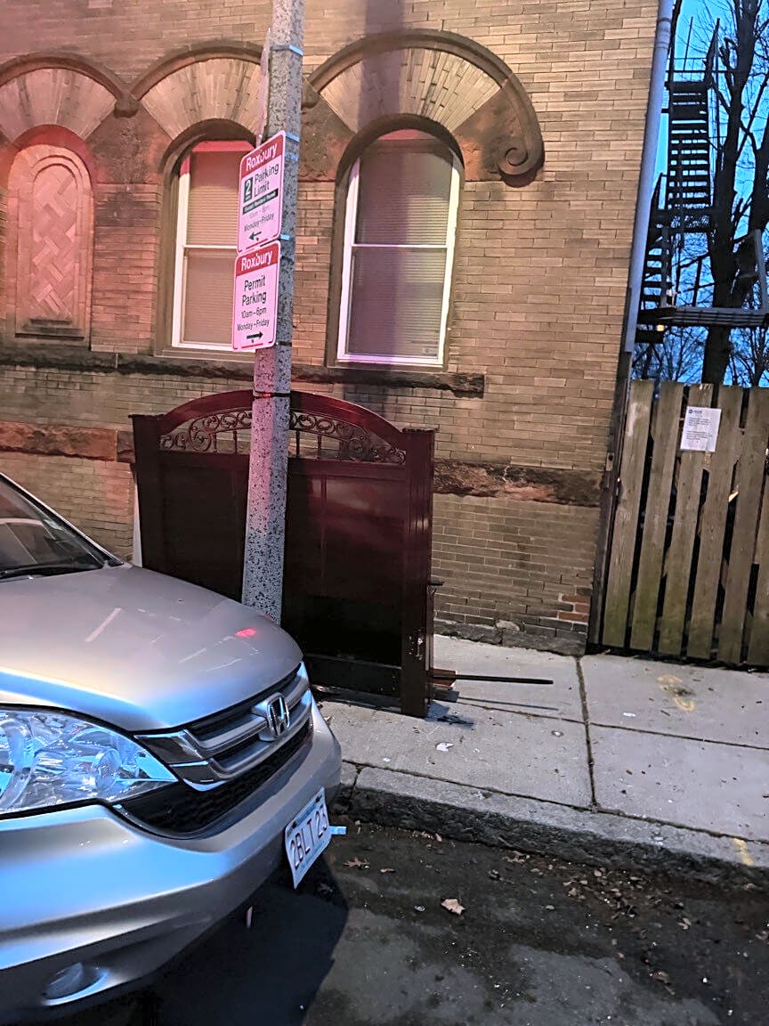16 Montfern Ave, Brighton, Ma, 02135Car partially blocking driveway. Difficult to get cars in and out. Virginia plate TVS-5236