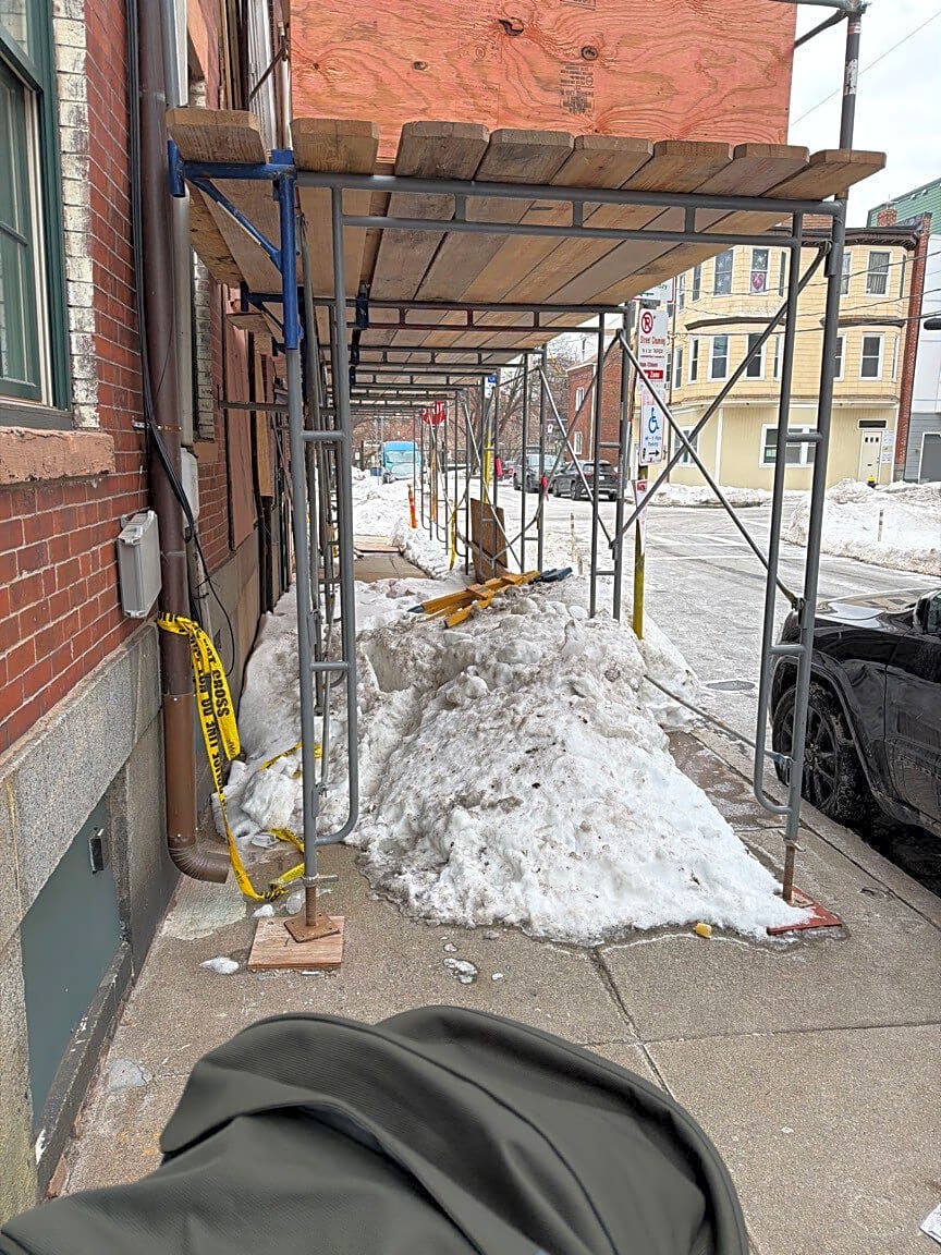 1168 Commonwealth Ave, Allston, Ma, 02134The wheelchair ramps that were installed for access to the temporary sidewalk in front of the construction at the Herb Chambers car dealership are piled with snow and have not been cleared. This is for both ramps on either end of the construction.
