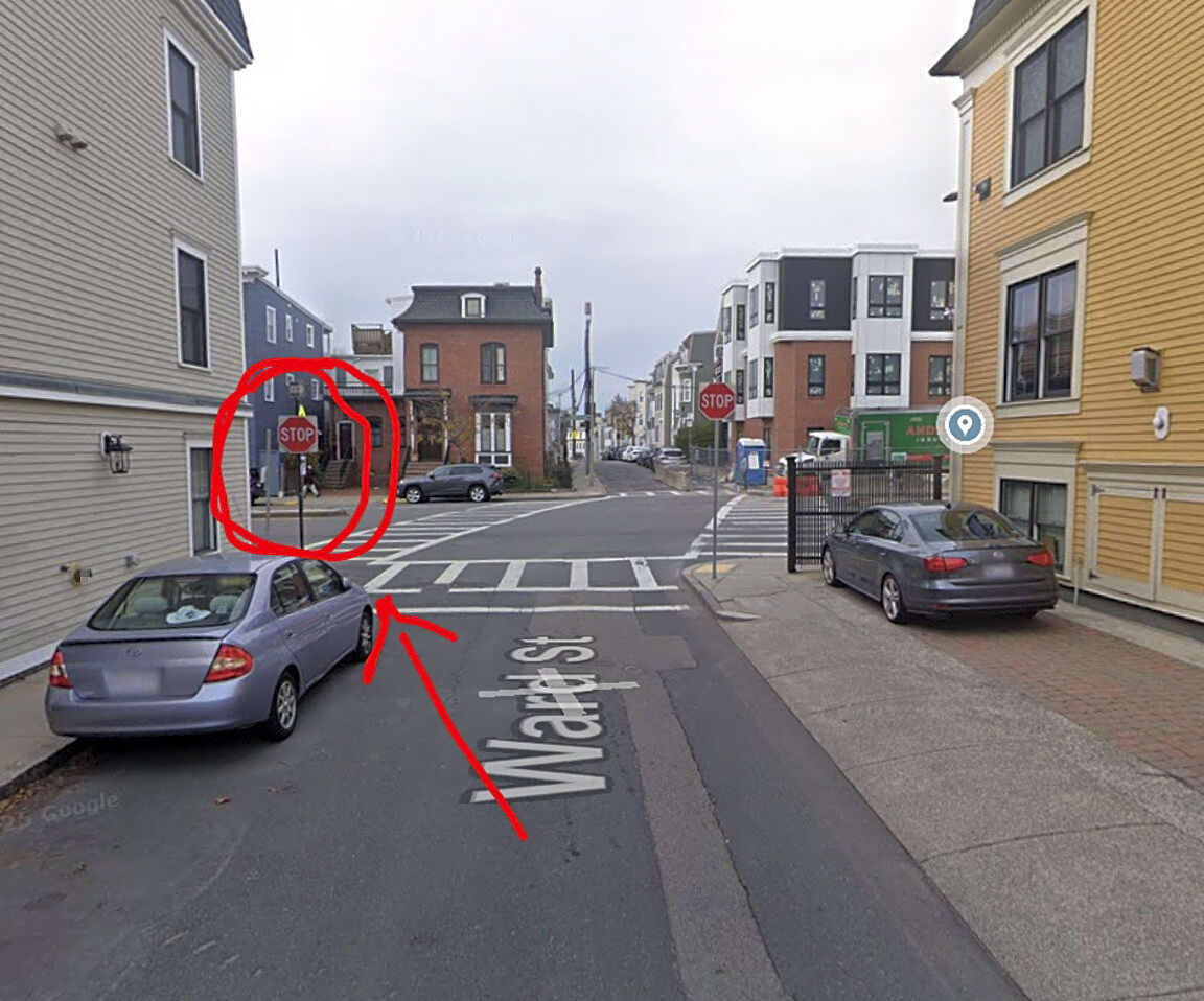 Intersection Of Ward St And Woodward St And Dorchester St, South Boston, MaHi! There is a stop sign at the intersection of Ward Street and Dorchester Street in South Boston that isn't secured to the pole and rattles/shakes in the wind, causing a lot of noise. Could you please secure the stop sign to the pole? Please see picture below for the stop sign that is circled. Thank you in advance!