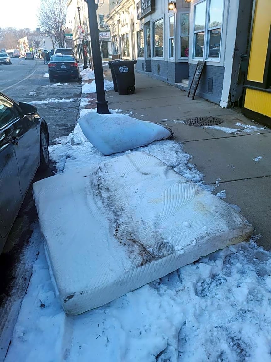 888 Morton St, Dorchester, Ma, 02126Stacks of mattresses. Unable to use the crosswalk.