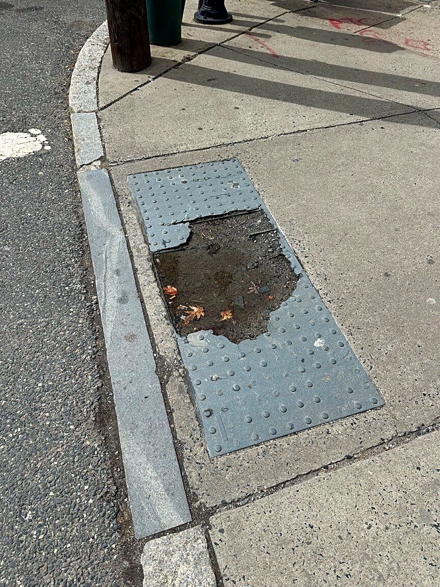 2 Sutherland Rd, Brighton, Ma, 02135the ADA compliant tactile plate at the crossing on sutherland road outside of the old mattress store next to the 7/11 is shattered and about completely gone and needs replaced