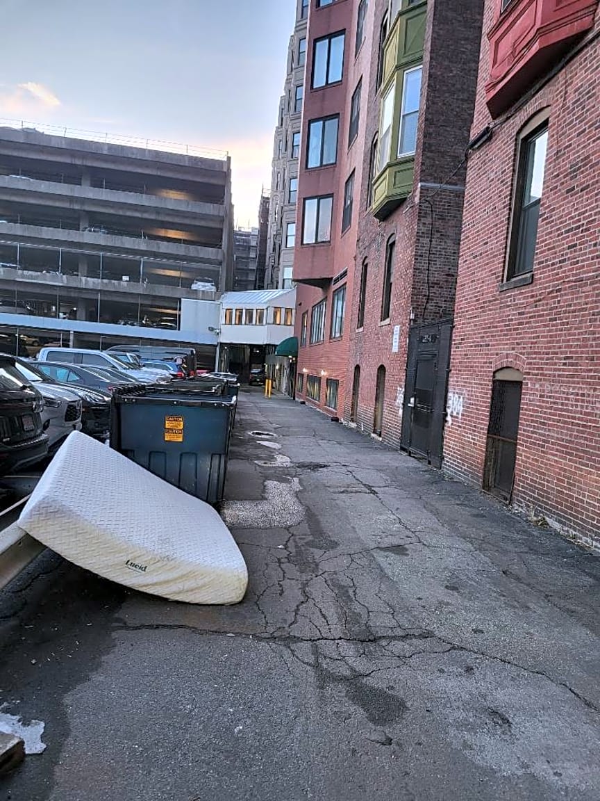 415 Newbury St, Boston, Ma, 02215A matress has been discarded near the trash bins behind 384 Comm Ave