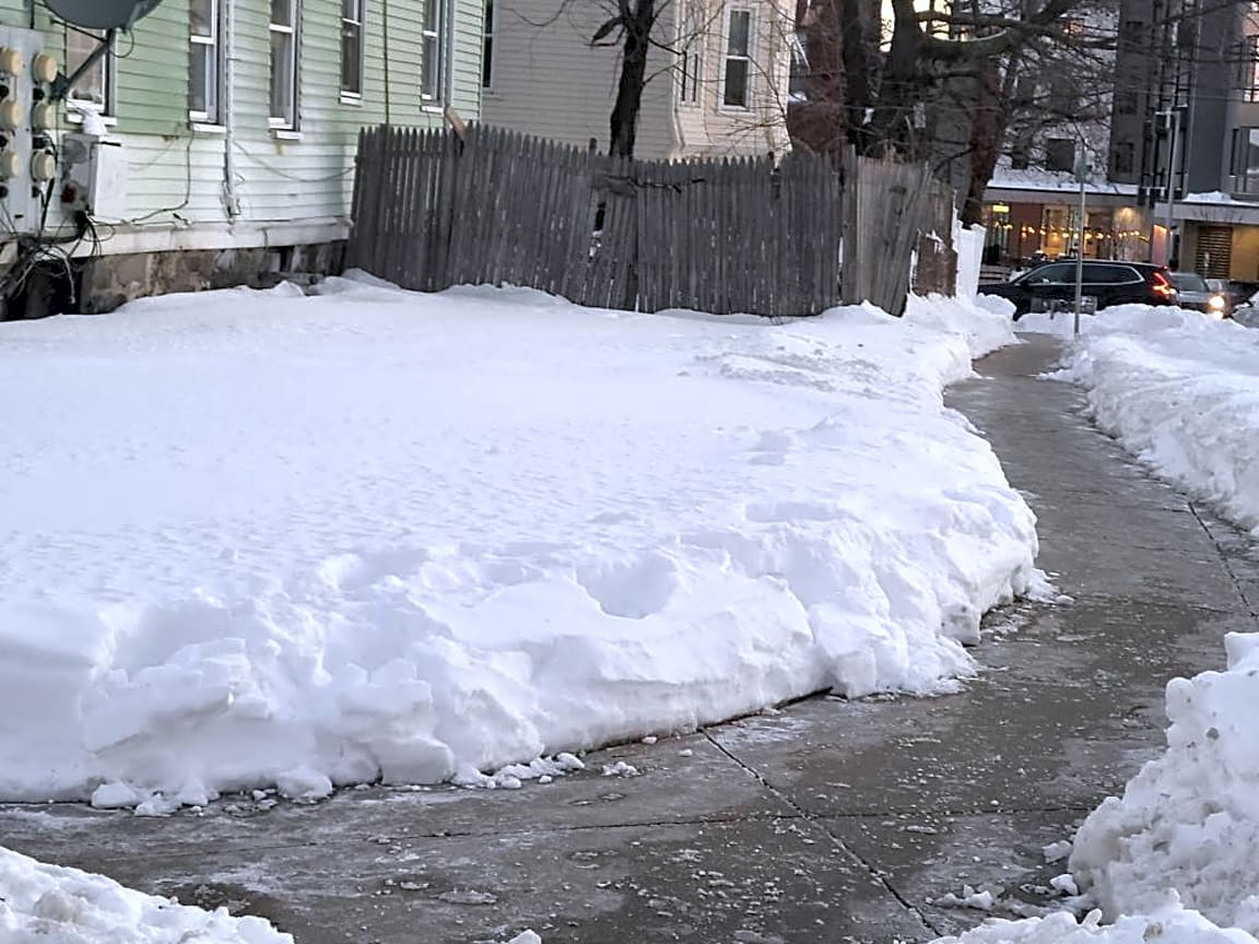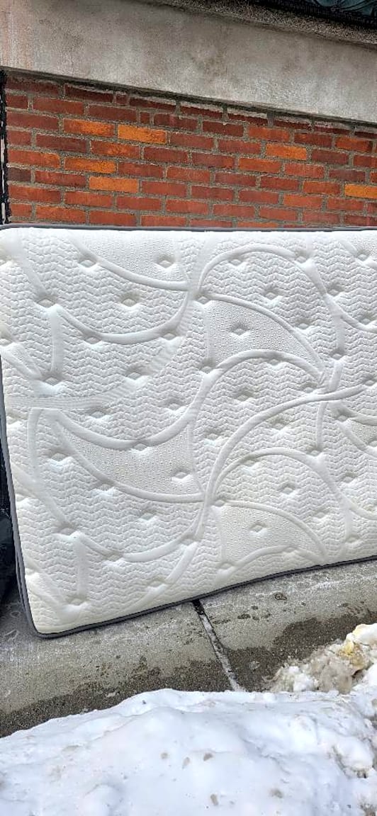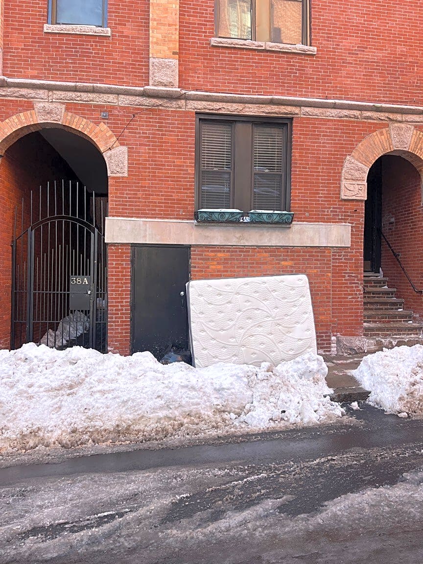 122 Beacon St, Boston, Ma, 02116Mattress on snow pile on sidewalk at 124 Beacon St (river side of street).
