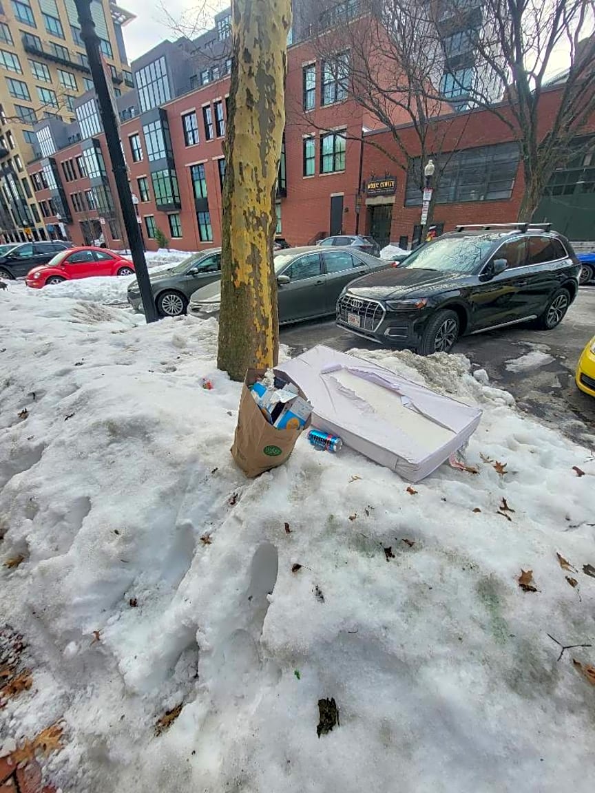 39 Warren Ave, Boston, Ma, 02116Constituent states a baby mattress and a bag of trash were dumped in front of property | Witnessed incident: [No]
