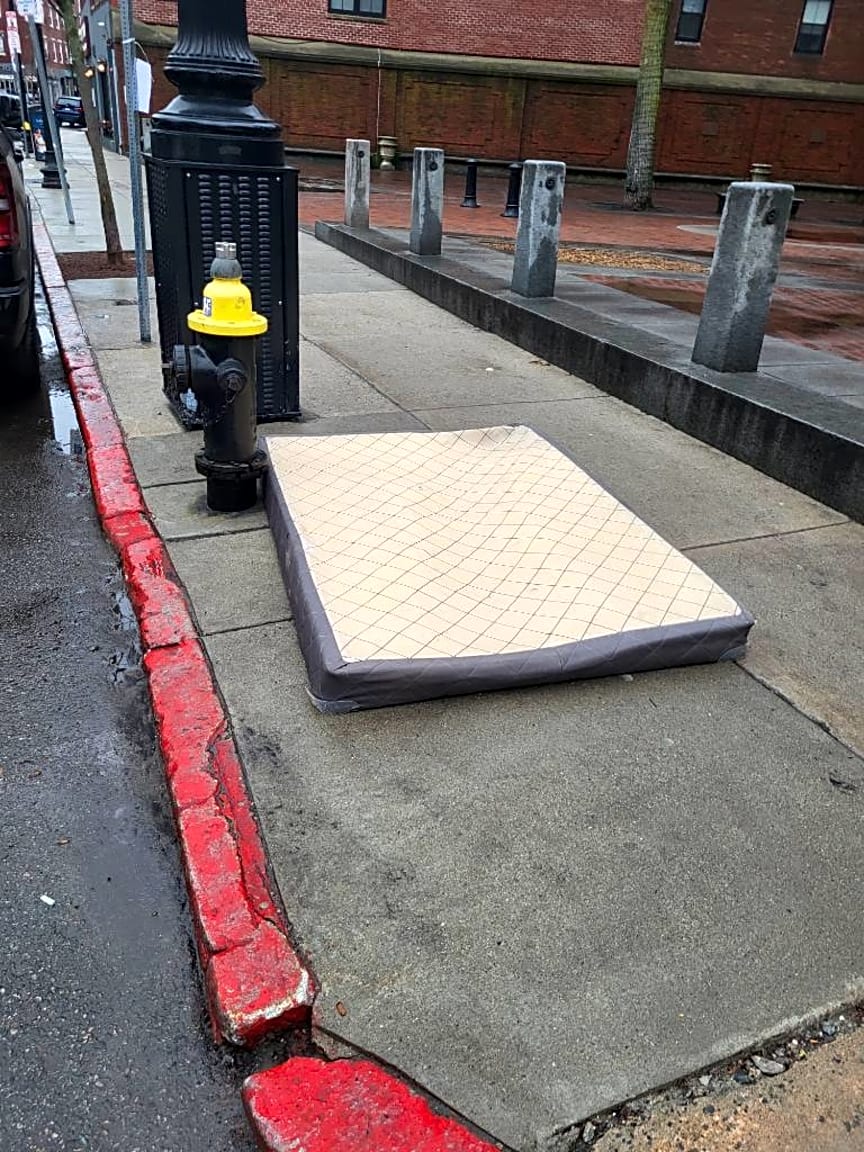 370 Hanover St, Boston, Ma, 02113Mattress blocking the sidewalk on Hanover Street in front of Prado. Our elderly neighbors walk by here every day to go to the health center, and they won’t be able to pass.